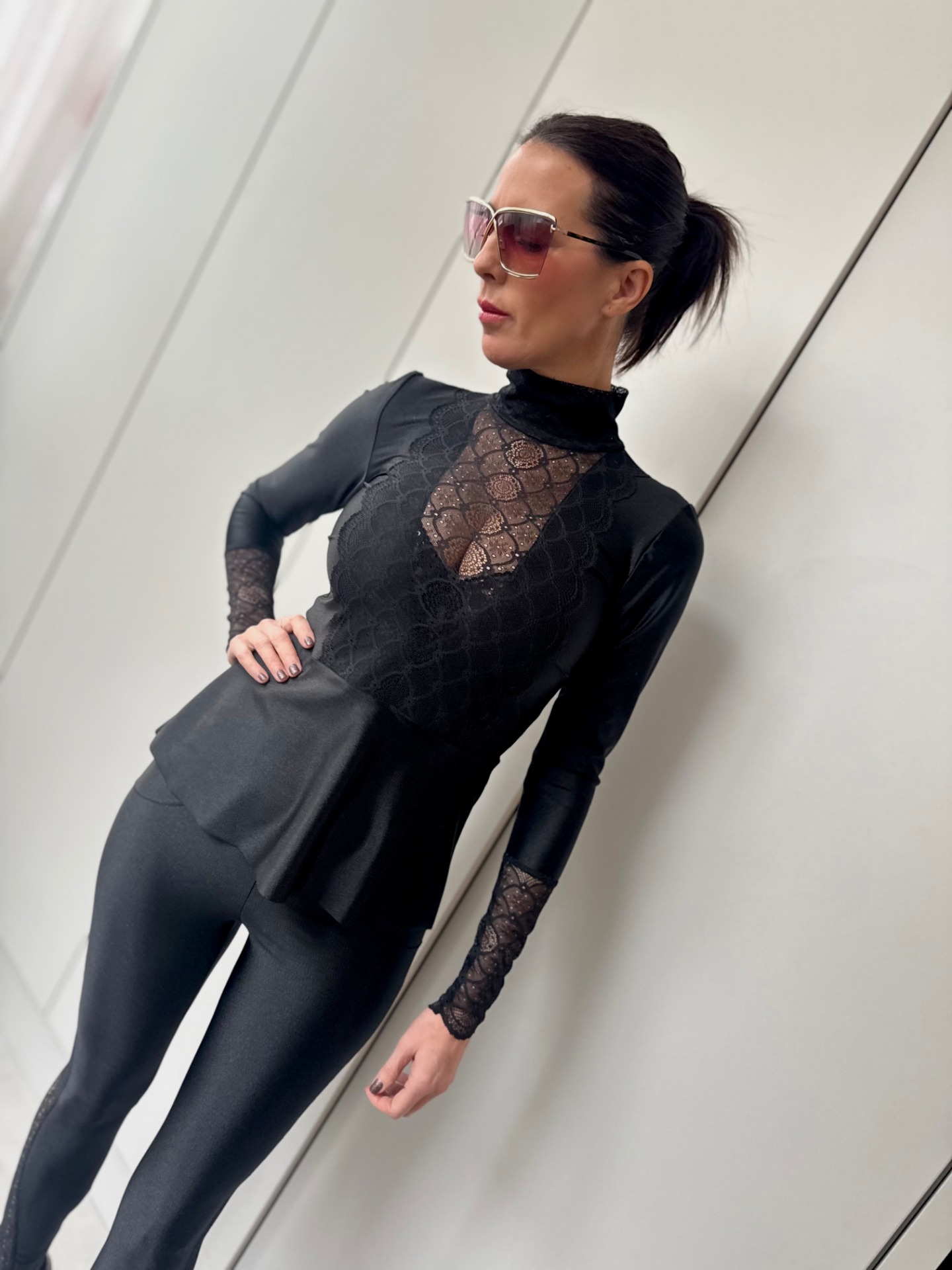 Dámská halenka s rolákem, krajkou a dlouhým rukávem. Krajka je i na zápěstí.