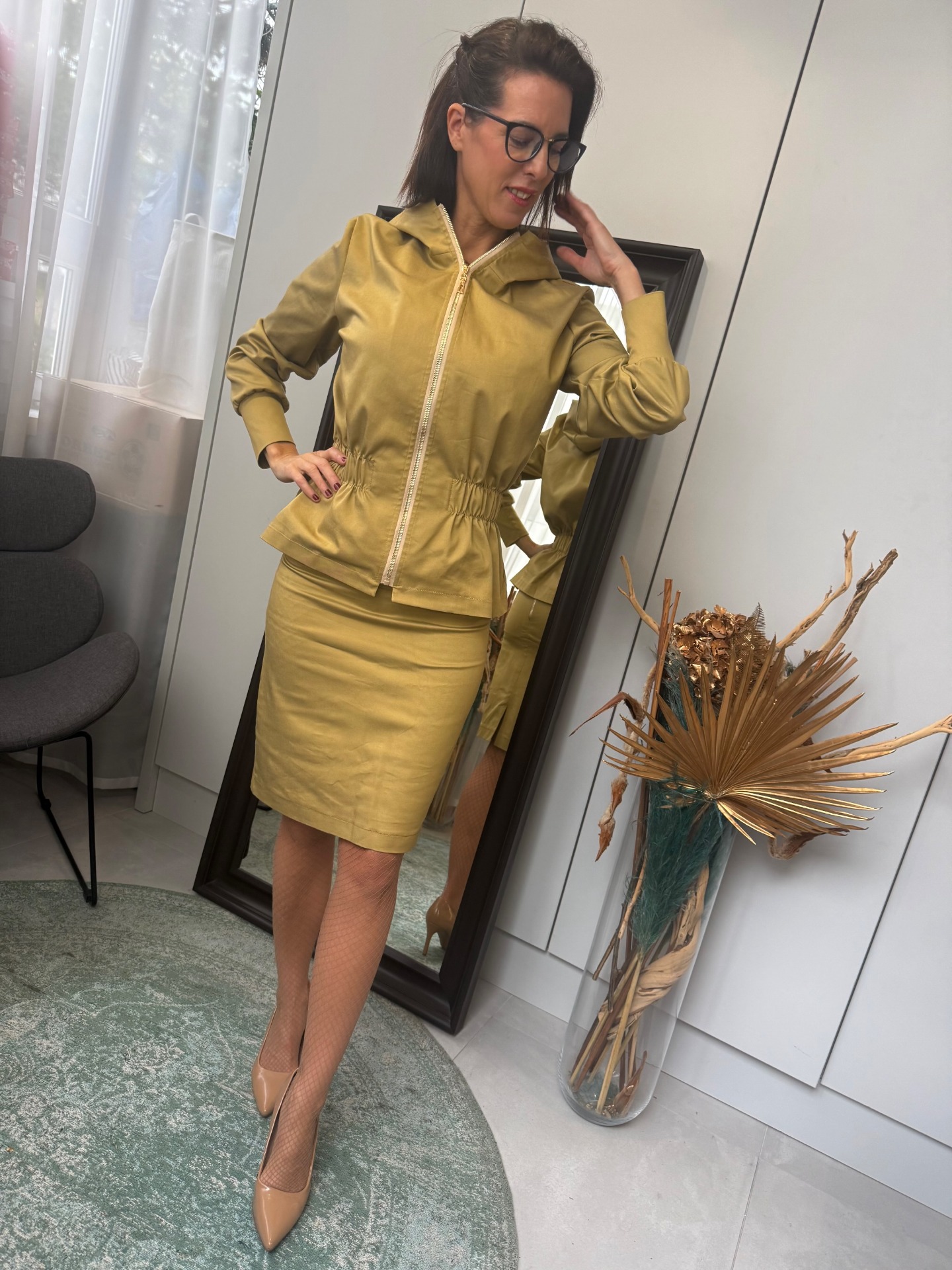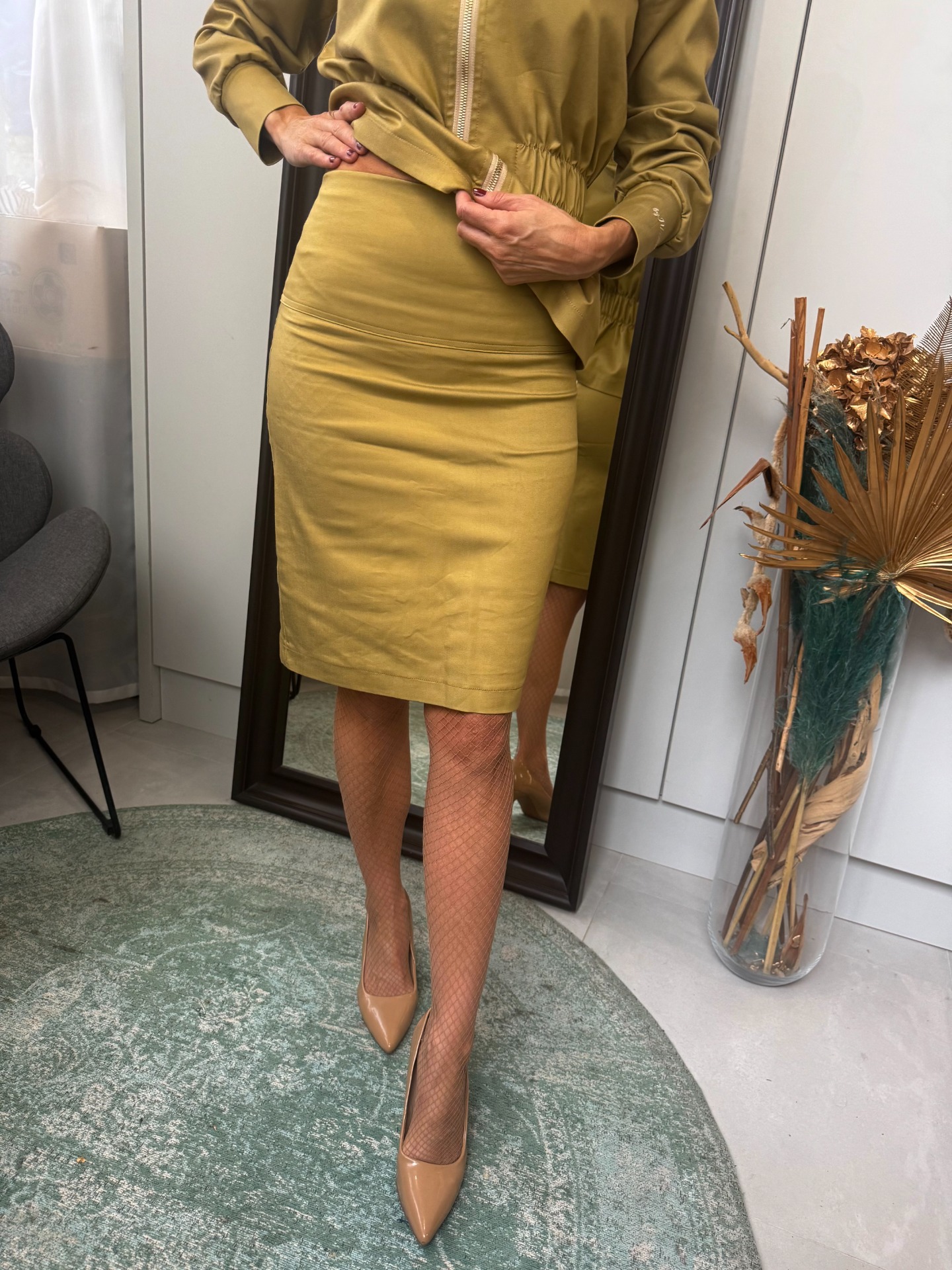 Dámská, úzká, sukně z denimu. Vzadu je zapínání na zip a rozparek pro pohodlnou chůzi.
